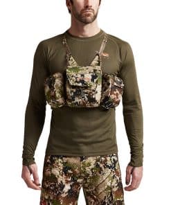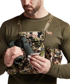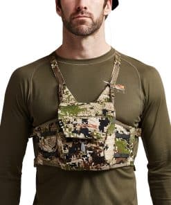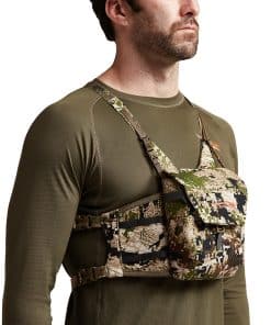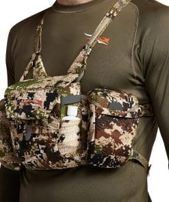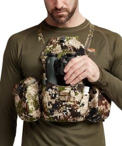 Get fast, easy access to your binos and essential gear with this streamlined chest pack that keeps your stuff at the ready while preventing it from bouncing around. We recognized a problem in carrying around bulky packs laden with cumbersome attachments, and we took inspiration from military chest rigs in designing this modular solution. The result is a stealthy and convenient system that lets you quickly and efficiently access your optics and other gear—whether you’re making a long hike in, moving between glassing points, or in the middle of a stalk. Plus, it’s adaptable, giving you the ability to add or subtract elements to fit any given situation, season, or hunting style.